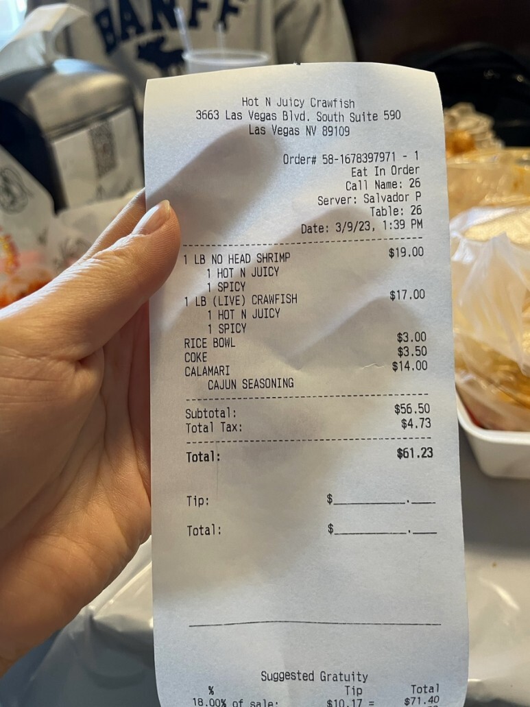 총 가격은 팁 제외 61.23불